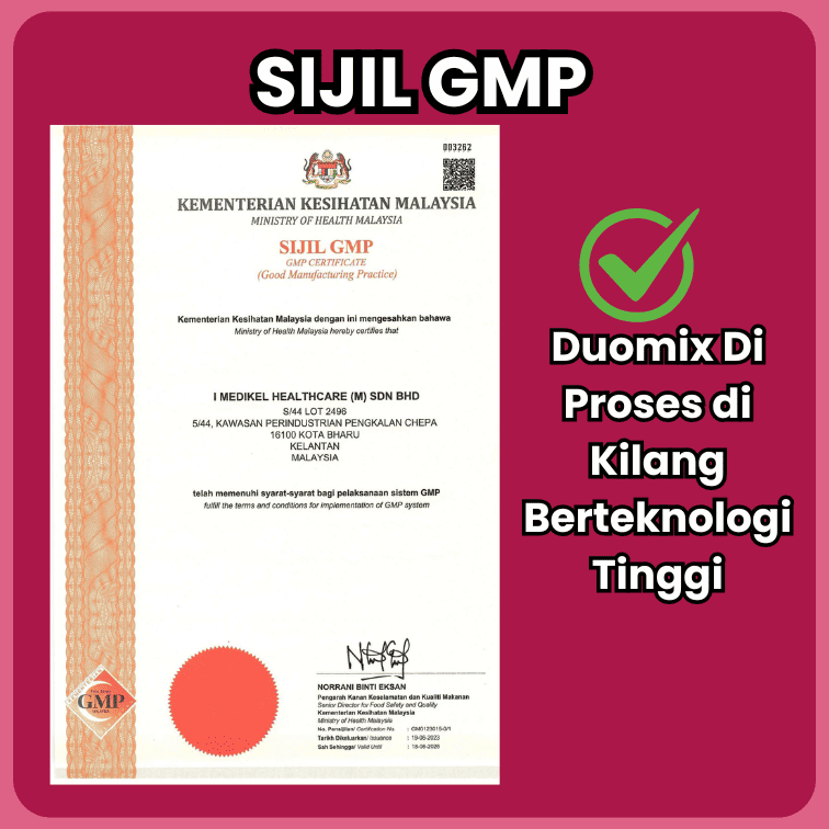 Duomix bukan ubat, ia suplemen makanan. Kadang-kadang ada reaksi awal detox seperti kerap buang angin atau najis lebih lawas, tapi ini normal & sementara.